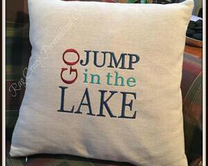 Embroidered Lake House Pillow Cover, Go Jump In The Lake